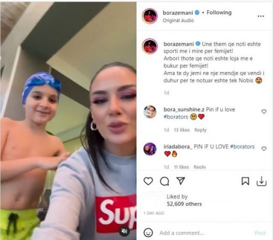 Së fundmi, Zemani ka postuar një video bashkë me djalin e saj, Arborin, të cilin e kishte dërguar në kursin e notit.
