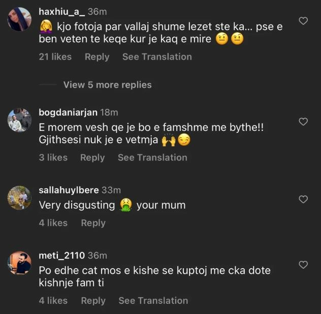 Mesa duket kjo nuk iu ka pëlqyer aspak ndjekësve të saj, duke marrë kështu shumë komente negative.