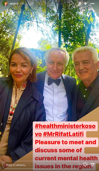 “Ministri i Shëndetësisë i Kosovës, Rifat Latifi. Ishte kënaqësi që u takuam dhe diskutuam për disa çështje aktuale të shëndetit mendor në rajon”, shkroi Vera.