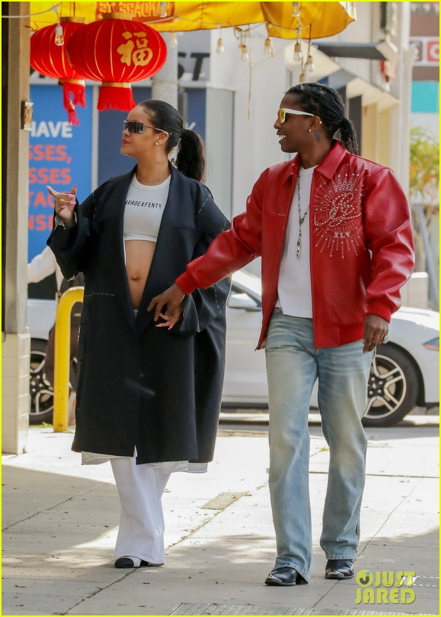 Rihanna dukej plot stil e veshur me një pallto të gjatë të zezë me një bluzë të bardhë ndërsa Rocky kishte veshur një xhaketë të kuqe dhe xhinse të kaltërta.