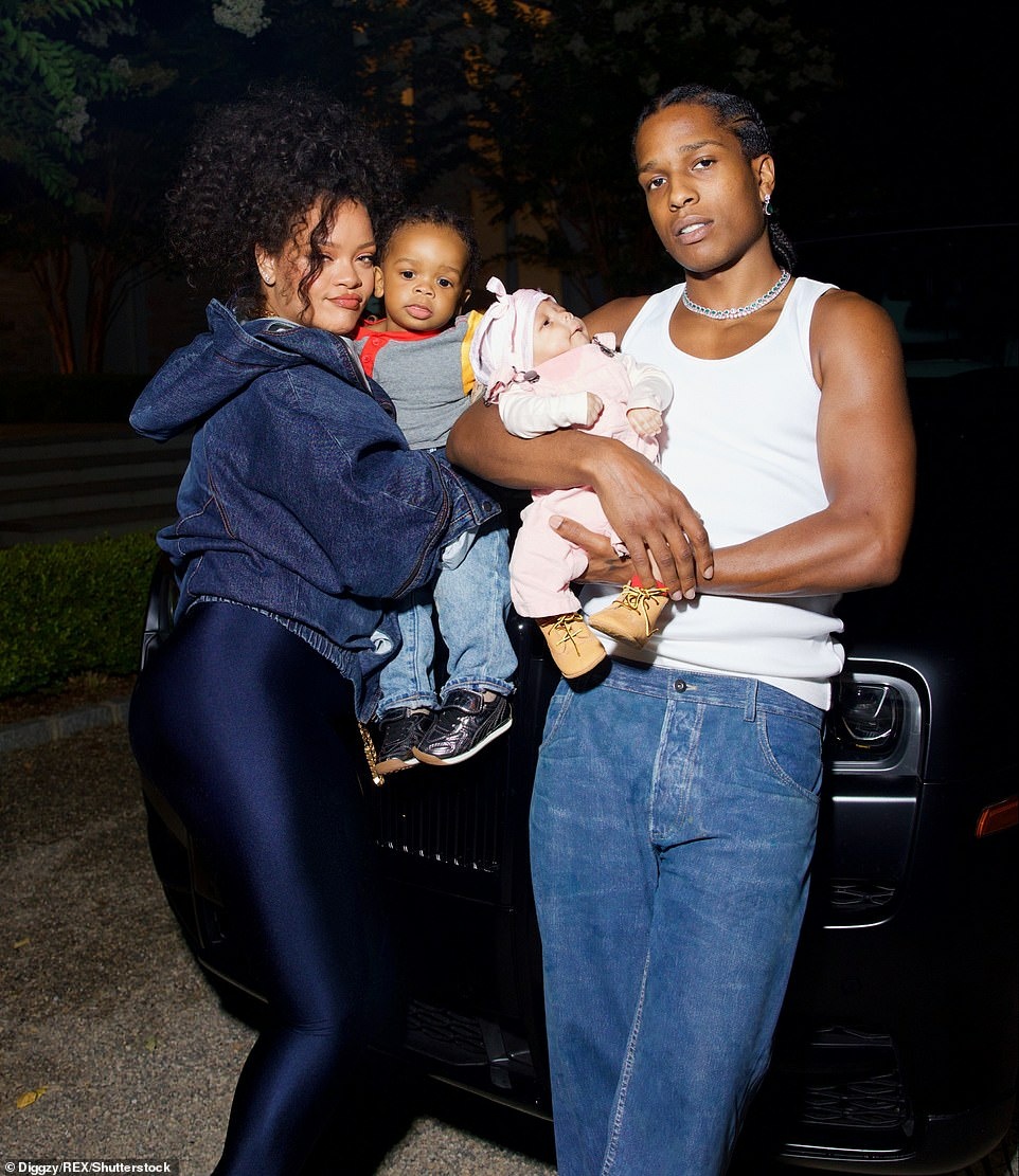 Në një tjetër, ASAP mbante fëmijën e parë të çiftit mbi supet e tij. Të tjerat tregojnë Rihannan duke buzëqeshur para kamerës teksa mban të porsalindur në duar.