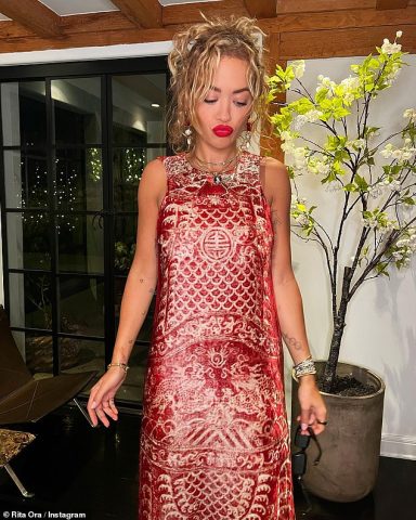 Këngëtarja 31-vjeçare dukej e pabesueshme me një fustan të ngushtë me ngjyrë të kuqe dhe ngjyrë ari, i cili theksonte figurën e saj të zhdërvjellët të trupit.