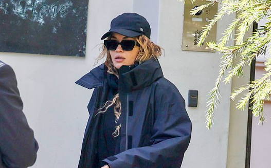 Flokët bionde kaçurrela të Ritës ishin mbledhur poshtë kapelës dhe jakës së lartë, teksa ajo tregonte bukurinë e saj natyrale duke u shfaqur tërësisht pa makijazh.