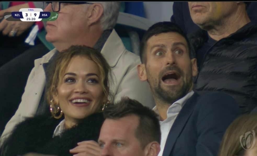Këngëtarja me prejardhje kosovare, Rita Ora së bashku me tenistin serb Novak Gjokoviq, janë duke e shikuar finalen e Kupës së Botës në sportin e rugby-s.