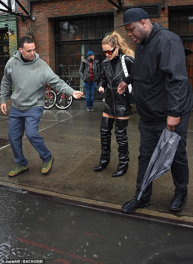 Rita Ora vuri në pah këmbët e saj të tonifikuara e veshur me një kostum rë zi me material lëkure teksa po dilte nga hoteli me pesë yje “Bowery” në New York City të shtunën.