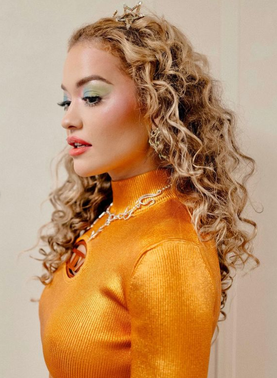 Duke shfaqur figurën e saj të pabesueshme, Rita pozoi e veshur me fustanin elegant metalik portokalli të ngushtë me një qafë polo dhe mëngë të gjata.