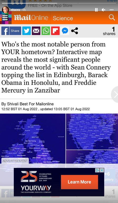E këtë artistja shqiptare e ka konfirmuar edhe së fundi pasi në mbarë botën është publikuar harta interaktive, e cila zbulon vendlindjet e të famshmëve në mbarë globin, shkruan arbresh.info