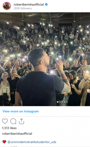 Vet këngëtari Berisha ndau me ndjekësit e tij disa fotografi nga mbrëmja, ku atmosfera duket të ketë qenë fantastike nën muzikën e interpretuar nga ai.