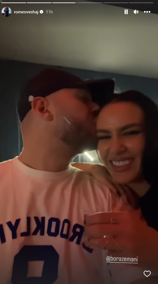 Romeo ka ndarë një video përkrah Borës duke shijuar një gotë alkool dhe nënë tingujt e këngës së Elgit Dodës “Ku je” ai i dhuron edhe një puthje në kohë prezantueses.
