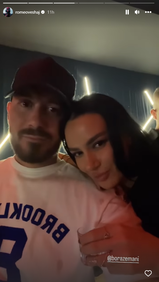 Romeo ka ndarë një video përkrah Borës duke shijuar një gotë alkool dhe nënë tingujt e këngës së Elgit Dodës “Ku je” ai i dhuron edhe një puthje në kohë prezantueses.
