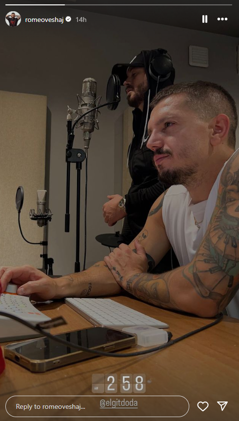 Kjo pasi është parë në studion e mikut të tij të ngushtë, Elgit Dodës, duke regjistruar prurjen e re.