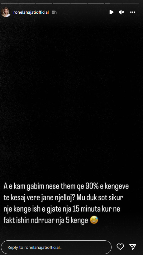 “A e kam gabim nëse them që 90% e këngëve të kësaj vere janë një lloj. Mu duk sot sikur një këngë ishte e gjatë nja 15 minuta kur në fakt ishin ndërruar nja 5 këngë”, shkroi Ronela.