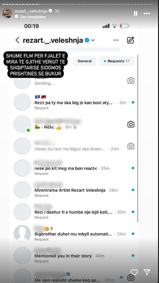 Pas daljes nga BBVK-ja, Rrezi ka ndarë medazhet nga fansat e tij në llogarinë e tij në Instagram.