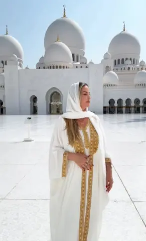 Fotografitë e saj nga vizita në këtë xhami, simbol i harmonisë dhe kulturës islame, janë shoqëruar me qindra komente.