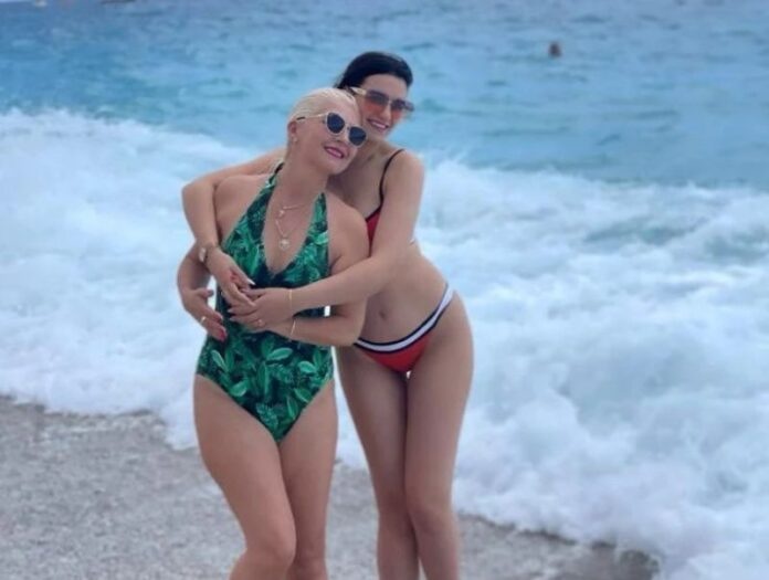 Mihrija ka publikuar një foto bashkë me nusen e saj të veshura në bikini.