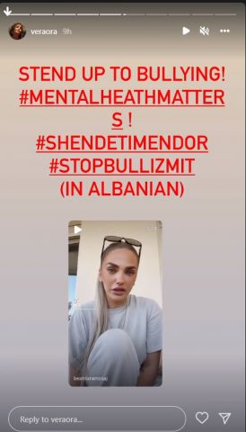 “Shëndeti mendor ka rëndësi! Stop bullizmit”, ka shkruar ajo në Instastory, ku ka publikuar videon e Beatrixës./noa/