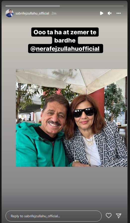 Së fundi, Sabriu ka publikuar një imazh në llogarinë e tij në “Instastory”, ku shihet nën shoqërinë e bashkëshortes së tij, Nerës, shkruan arbresh.info