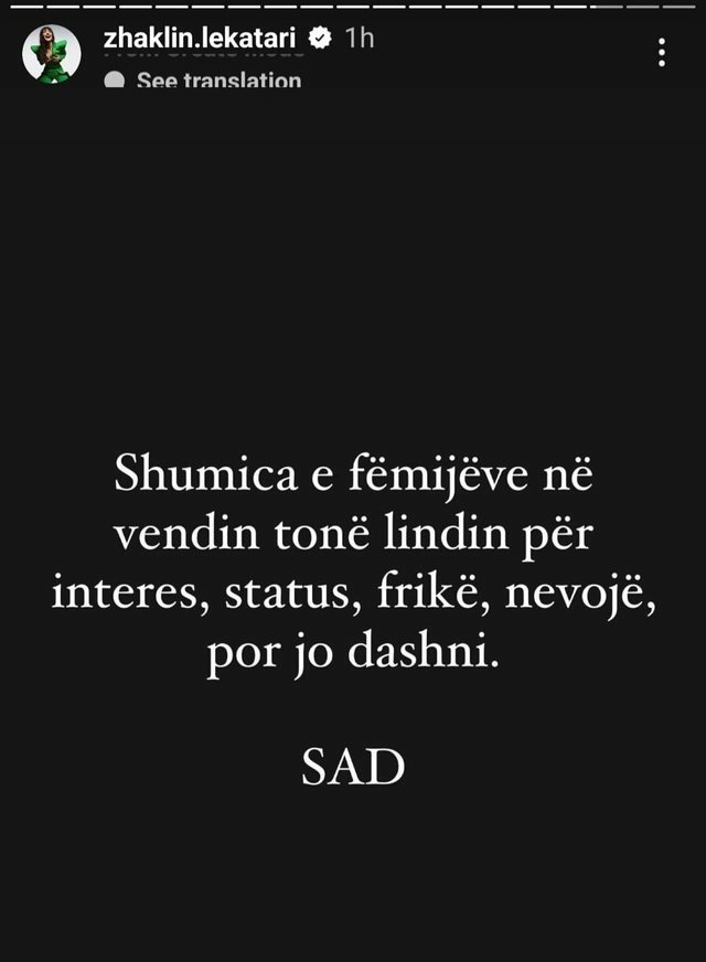 “Shumica e fëmijëve në vendin tonë lindin për interes, status, frikë, nevojë, por jo dashni. E trishtueshme.”-shkruante ajo.