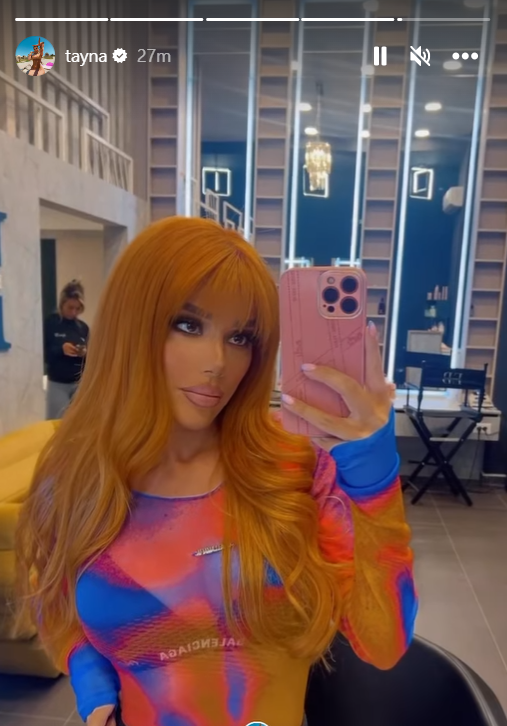 Përmes disa postimeve që ka shpërndarë në InstaStory, Tayna tregon se ka bërë flokët ngjyrë portokalli.