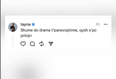 “Shumë do drama t’pa nevojshme, qysh spo priojn”, ka shkruar Tayna në “Thread’, përcjell Arbresh.info