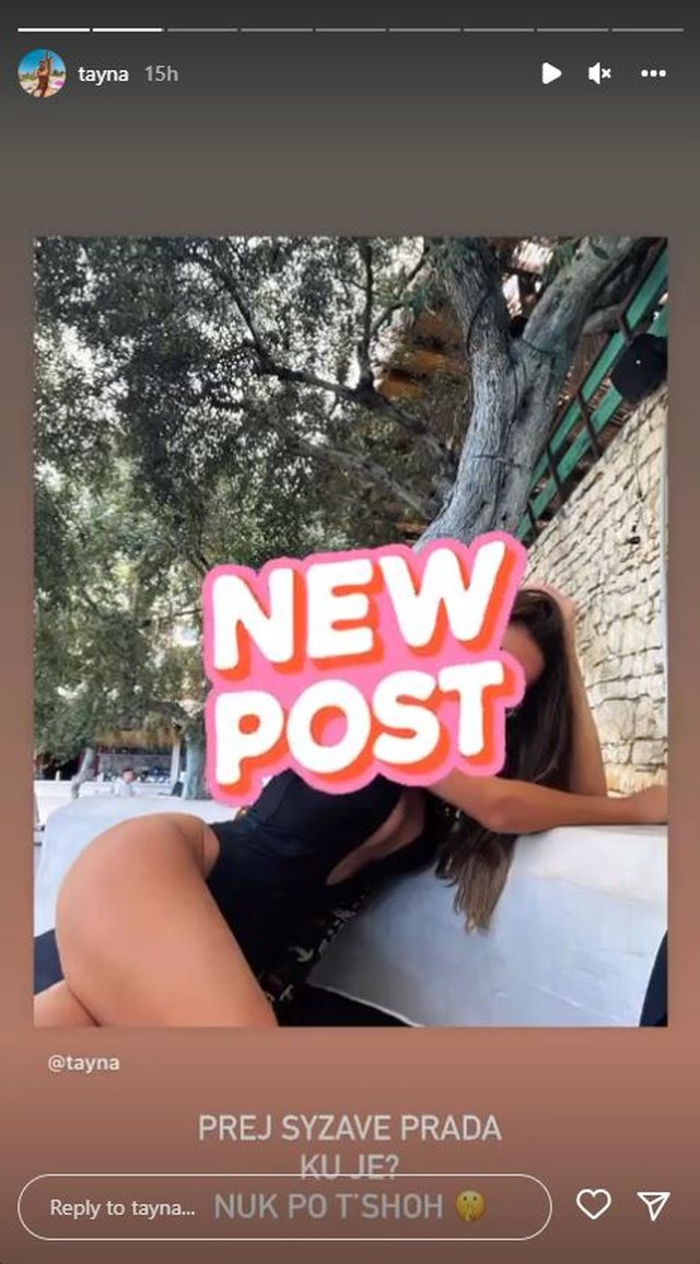 Ndërkohë Tayna, nuk ka qëndruar në heshtje. Reperja ka postuar një foto me bikini dhe ka shkruar: Prej syzeve prada ku je nuk po të shoh”, fragment ky nga kënga e saj e fundit. /arbresh.info/