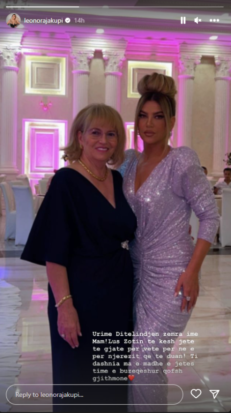“Urime ditëlindjen zemra ime mam! Lus Zotin të kesh jetë të gjatë për vete për ne për njerëzit që të duan! Ti dashnia ma e madhe e jetës time e buzëqeshur qofsh gjithëmonë’, ka shkruar ajo. /arbresh.info/