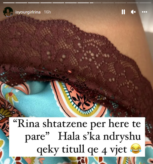 “Rina shtatzënë për herë të parë”, akoma nuk ka ndryshuar ky titull që katër vjet.”, shkroi këngëtarja në një postim në ‘InstaStory