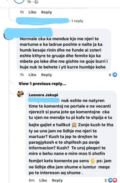 Në një nga portalet kosovare ka marrë vëmendje komenti i Leonorës, e cila i ka replikuar një gruaje.