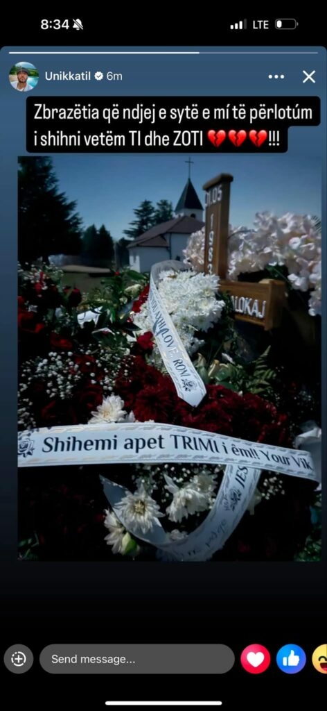 “Zbrazëtia që ndjej e sytë e mi të përlotun i shihni vetëm ti dhe Zoti”, ka shkruar Unikkatili.