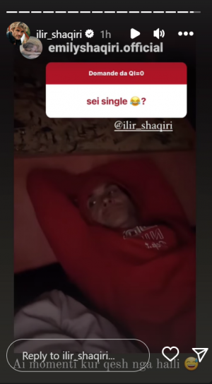 Së fundmi ajo është pyetur nga një ndjekës në profilin e saj në “Instagram” nëse është beqare. Ajo vendosi t’i përgjigjej kësaj pyetjeje përmes një videoje ku shihet pranë Iliri dhe Emanuelës. Me shaka ajo thotë se “nuk është beqare dhe është në një lidhje”, ndërsa e kthen kamerën te babai i saj për të parë si do të reagojë. Ilir e shikon i habitur, ndërsa e pyet se me kë. Në atë moment Eimly kthen telefonin nga macja e saj.