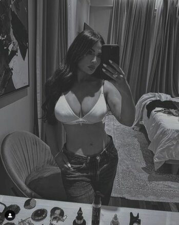 Në Instagram ajo ka postuar një fotografi selfie bardh e zi, duke i vënë në pah linjat tërheqëse të turpit.