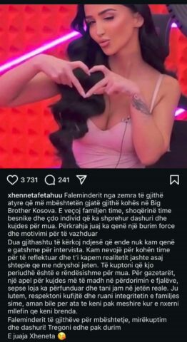 Ish banorja e Big Brother Vip Kosova, Xheneta Fetahu ka reaguar për herë të parë me një shkrim të gjatë që pas daljes nga shtëpia e famshme.