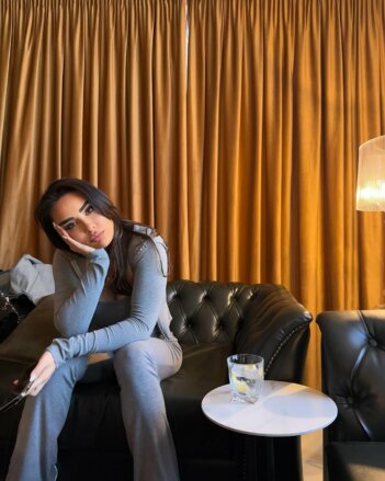 Me flokët e lëshuara dhe një buzëqeshje të ngrohtë, Xhensila reflekton energji pozitive dhe elegancë në çdo imazh. /Telegrafi/