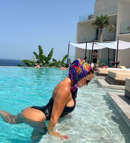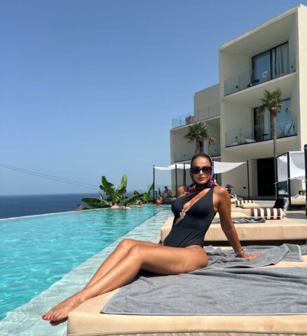 Më pas, e njëjta publikoi edhe një fotografi tjetër të realizuar në Dhërmi, ku shihej në plazh, teksa vinte në pah linjat trupore në një paraqitje me bikini.