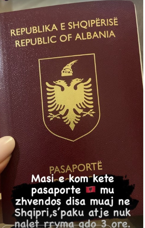 “Pasi e kam këtë pasaportë, me u zhvendos disa muaj në Shqipëri, së paku atje nuk ndalet rryma çdo tri orë”, ka shkruar Ismaili në mbishkrimin e fotografisë, duke bërë kështu njëherësh të ditur se zotëron nështetësi shqiptare.