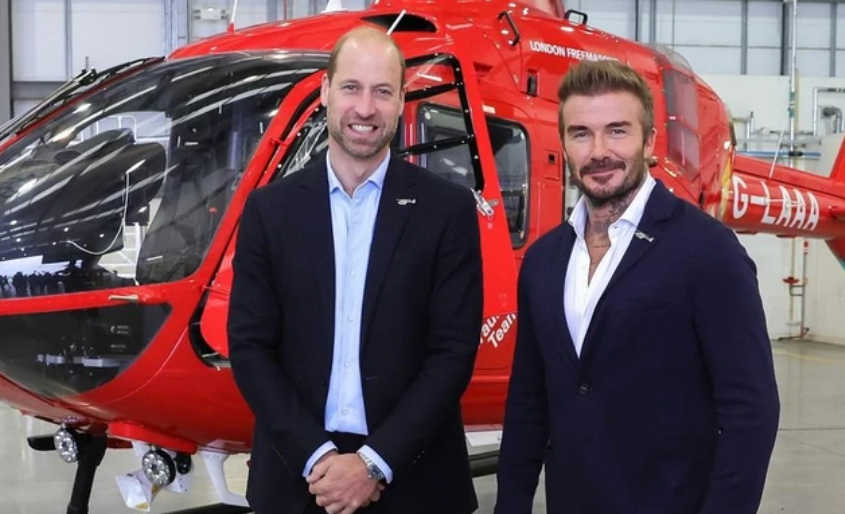 William, i cili punoi si pilot i ambulancës ajrore për Ambulancën Ajrore të Anglisë Lindore midis marsit 2015 dhe korrikut 2017, ndau fotografitë në mediat sociale së bashku me titullin: ‘Duke festuar lëshimin e helikopterëve të rinj me David Beckham!/abcnews.al
