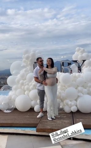 Ditën e sotme Einxhel dhe Dagz kanë organizuar një fest me të familjet dhe shoqërinë e tyre të ngushtë, për të zbuluar për herë të parë gjininë e bebit të tyre. Deri më tani është aluduar shumë se çifti mund të jetë në pritje të një vajze, por jo Einxhel dhe Dagz së shpejti do të bëhen prindër të një djali. Ka qenë shoqëria e tyre ata që kanë postuar fotot e para nga ambjenti i organizuar në një mjedis të hapur dhe zbukuruar me tullumbace të bardha.