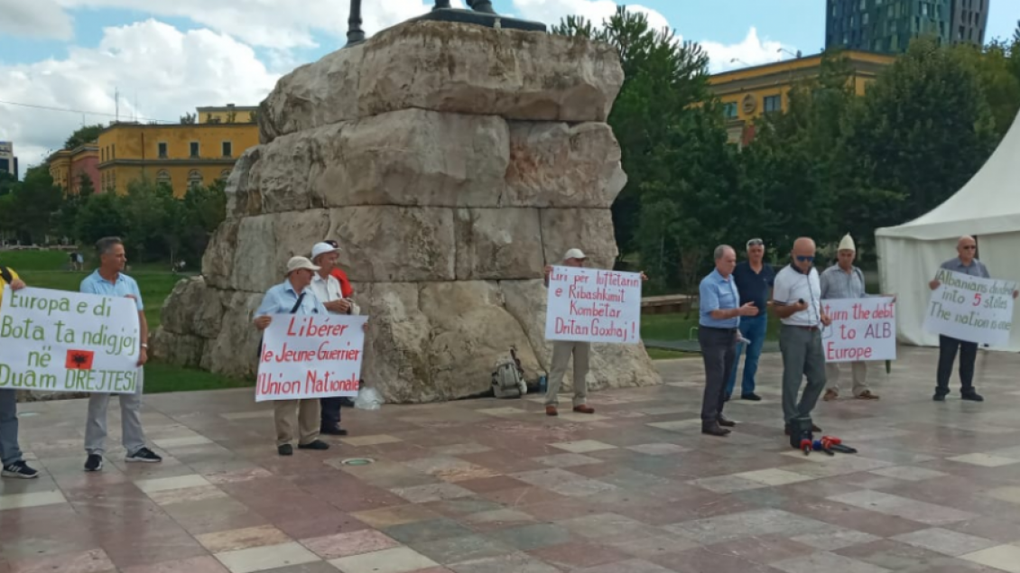Lëvizja Atdhetare “Krahët e Shqipes” organizoi një protestë në Sheshin “Skënderbej” për arrestimin e ish-anëtarit të Ushtrisë Çlirimtare të Kosovës Dritan Goxhaj në Tiranë, për llogari të gjykatës speciale.