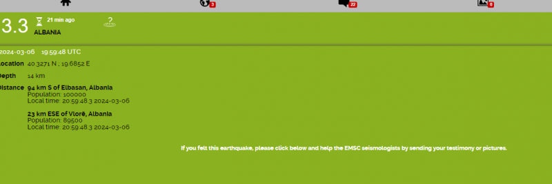 Lëkundje tërmeti janë ndjerë në vendin tonë këtë mbrëmje.