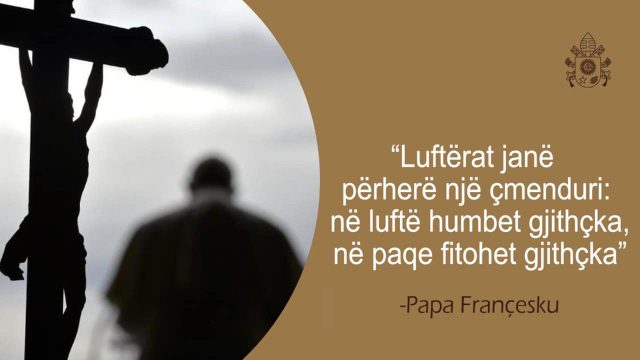 “Luftërat janë përherë një çmenduri; në luftë humbet gjithçka, në paqe fitohet gjithçka”, thuhet në thënien e Atit të Shenjtë.