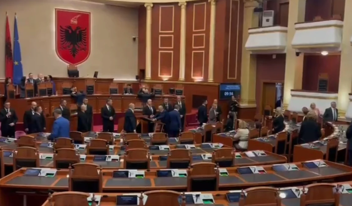 Në nisje të seancës plenare, deputetët e opozitës vendosën karriget para foltores.