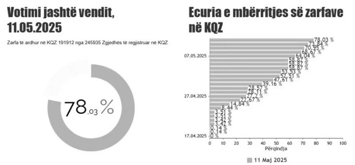 Sipas informacioneve nga Komisioni Qendror të Zgjedhjeve, 78.03% e diasporës ka votuar në këto zgjedhje parlamentare.