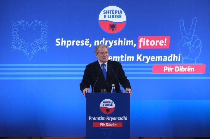 Ish-Kryeministri Sali Berisha gjatë prezantimit të kandidatit të koalicionit “Shtëpia e Lirisë”, Premtim Kryemadhi.