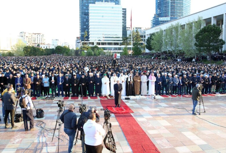 Mijëra besimtarë myslimanë në sheshin Skënderbej, kremtohet Fitër Bajrami në Tiranë