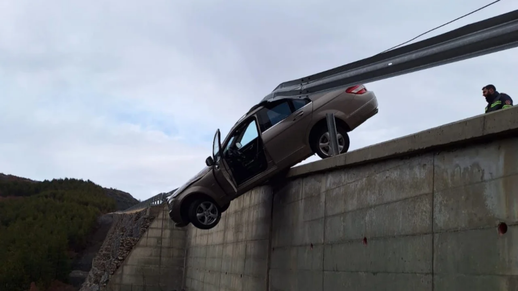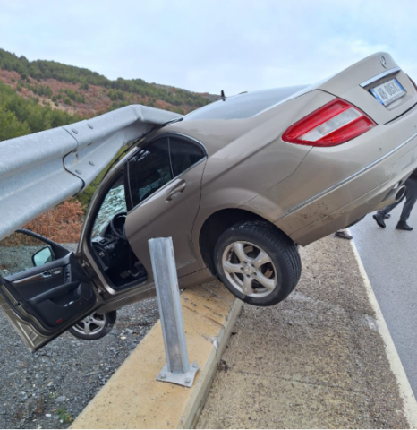 Makina u përplas për barriera anësore, ndërsa sipas informacioneve, zjarrfikësit kanë ndërhyrë shpejt ku dhe kanë shpëtuar shoferin bashkë me pasagjerë.