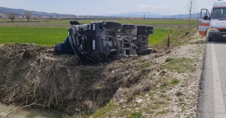 Ndërsa një kamion po kalonte në këtë aks rrugor është përmbysur anës rrugës.