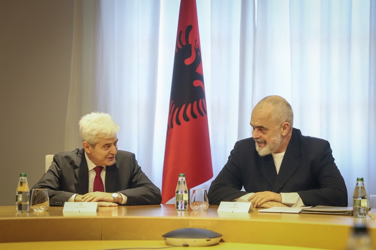Kryetari i BDI-së, Ali Ahmeti dhe kryeministri i Shqipërisë, Edi Rama gjatë këtij takimi biseduan mbi rëndësinë e funksionimit sa më parë të sistemit një sportelesh One Stop Shop në pikat kufitare mes Maqedonisë së Veriut dhe Shqipërisë dhe me këtë edhe për liberalizimin edhe më të madh të lëvizjes së qytetarëve tanë, shkruan arbresh.info.