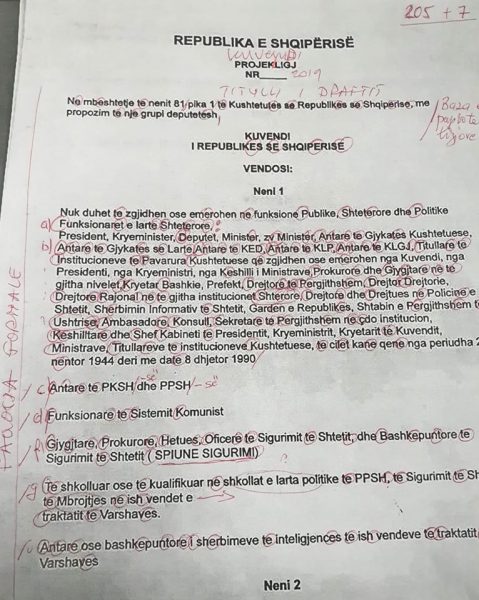 Për shembull, mungon emërtimi i draftit ligjor, mungon referimi i saktë në bazën ligjore, vetë emërtimi “projektligj” ka një germë të munguar, janë përmendur funksione që nuk ekzistojnë apo disa funksione janë emëruar gabim, si p.sh, në vend të përcaktimit “Forcat e Armatosura” përmendet “ushtri”, përmendet “shkollat e larta politike të PPSH” kur në Shqipëri nuk ka pasur kurrë shkollë dhe as emërtim të tillë, trajton ish anëtarë e bashkëpunëtorë të shërbimeve sekrete të shteteve ish anëtare të Traktatit të Varshavës, – informacion që nuk e ka dhe nuk mund ta ketë shteti shqiptar; etj, etj.