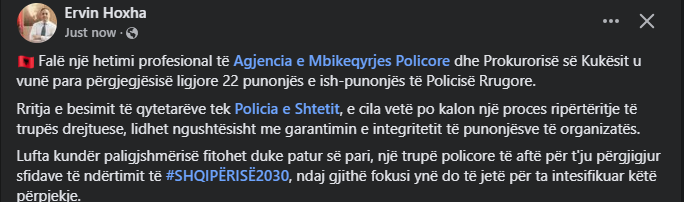 Sipas tij krejt kjo u bë falë një hetimi profesional nga Agjencia e Mbikëqyrjes Policore dhe Prokurorisë së Kuksit.