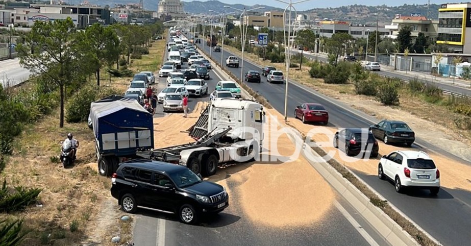 Si pasojë e këtij aksidenti, e gjithë sasia e madhe e grurit është derdhur në rrugë, duke e mbushur dy kahet e autostradës, raporton albeu.
